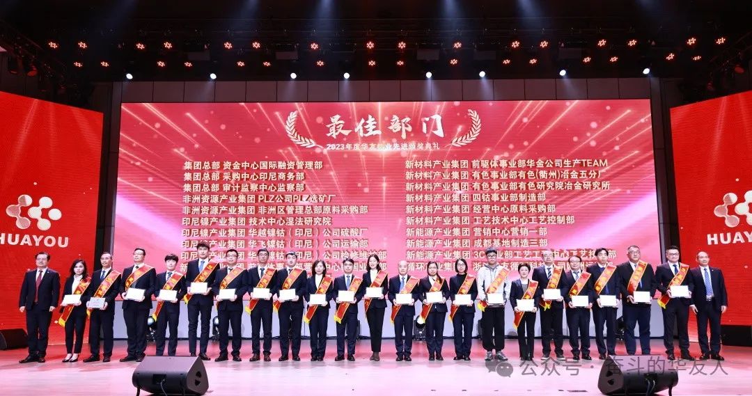 1月19日,以“夢想 奮進(jìn) 榮耀”為主題的華友鈷業(yè)2023年度先進(jìn)頒獎(jiǎng)典禮在集團(tuán)總部舉行。