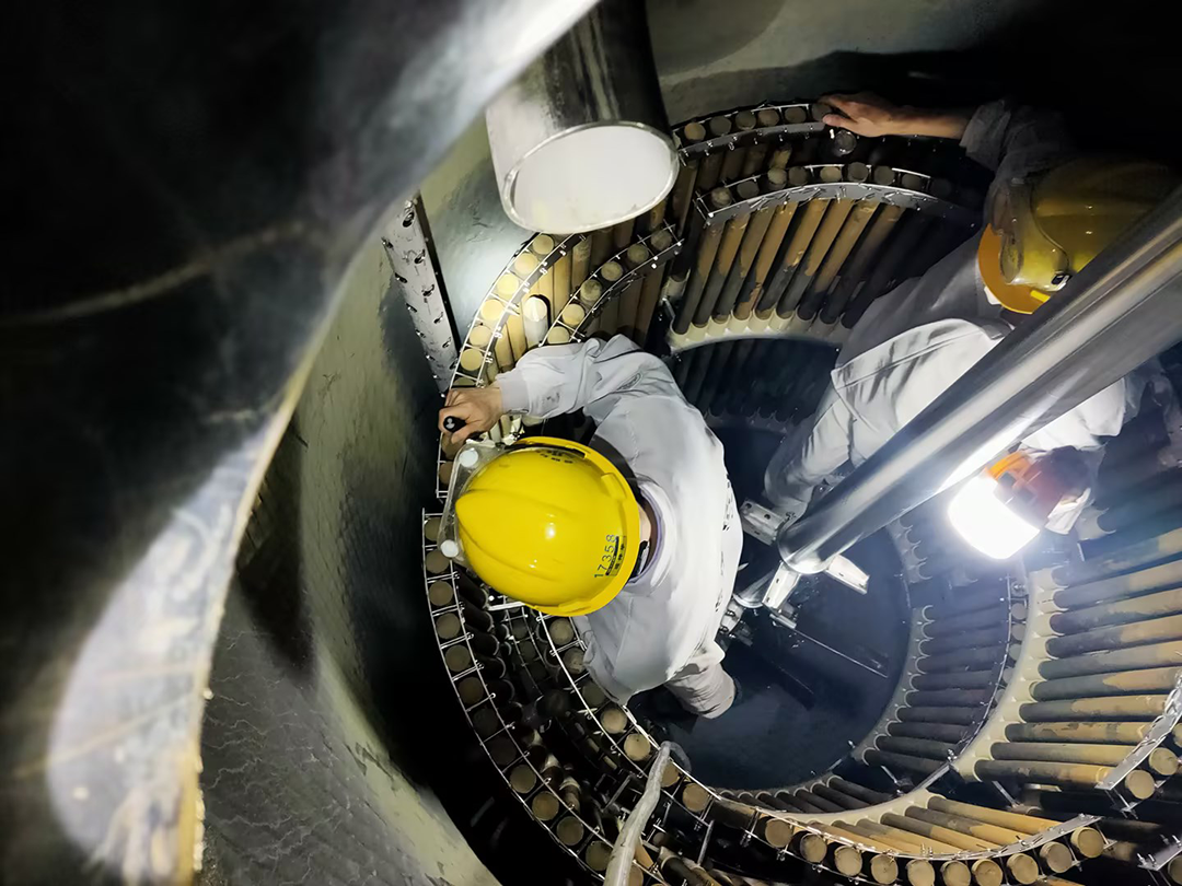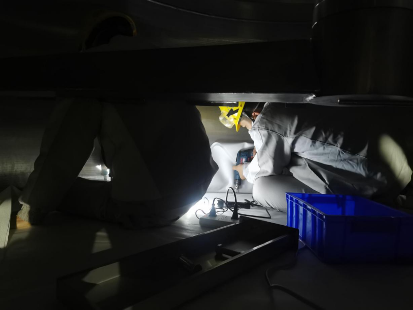 數(shù)不清多少個日夜,他們蜷縮在一個小空間里面?;蚴菣z查設(shè)備,或是安裝管道,或是日常清理,燈光下的他們閃爍著華友人自強(qiáng)不息的精神。