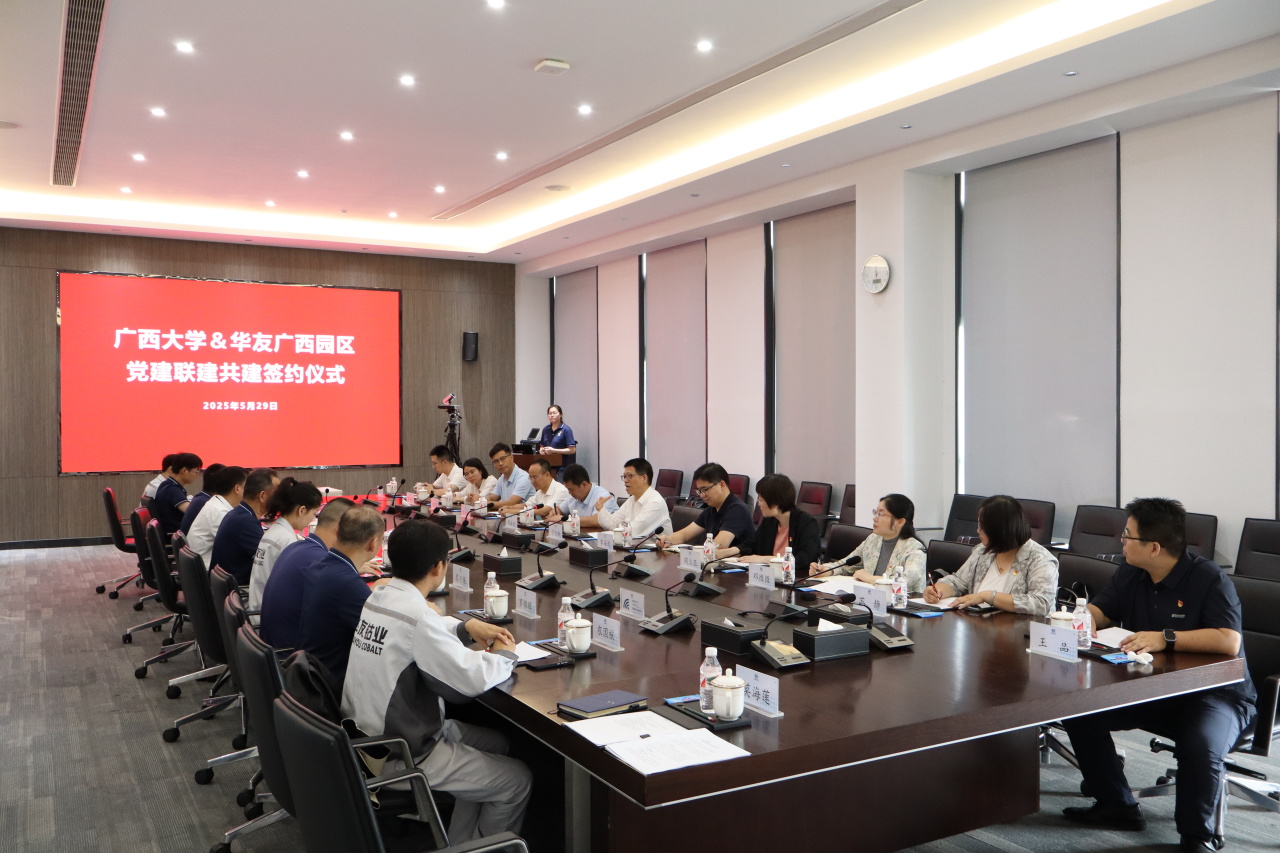 簽約儀式上,華友廣西園區(qū)黨委書(shū)記徐學(xué)良與廣西大學(xué)資源環(huán)境與材料學(xué)院黨委書(shū)記沈大強(qiáng)共同簽署黨委聯(lián)建協(xié)議,明確以黨建引領(lǐng)業(yè)務(wù)發(fā)展,推動(dòng)產(chǎn)學(xué)研深度融合,實(shí)現(xiàn)資源共享、優(yōu)勢(shì)互補(bǔ)、協(xié)同共進(jìn)。廣西大學(xué)黨委副書(shū)記寧旭初在座談會(huì)上講到,此次聯(lián)建共建是推動(dòng)基層黨組織建設(shè)走深走實(shí)的重要舉措,也是實(shí)現(xiàn)“黨建+產(chǎn)業(yè)”“黨建+教育”深度融合的創(chuàng)新實(shí)踐。