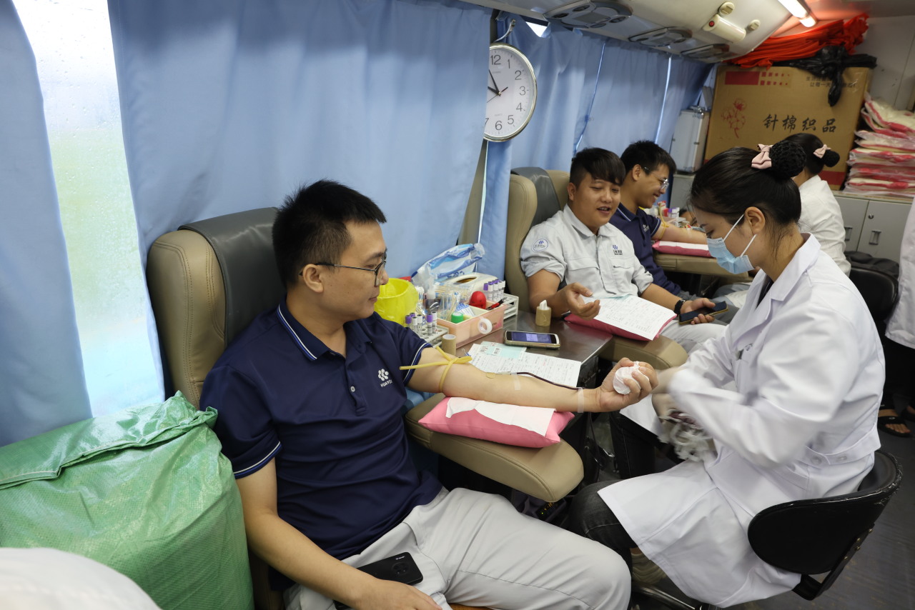 早上9點(diǎn),報(bào)名參加獻(xiàn)血的員工自行來到獻(xiàn)血車。盡管臺風(fēng)天氣帶來風(fēng)雨,大家依舊熱情不減,井然有序地排隊(duì)登記、接受健康檢查、進(jìn)行血液采集?,F(xiàn)場既有多次獻(xiàn)血的“老將”,也有首次獻(xiàn)血的“新兵”,每位志愿者都用行動詮釋了愛心與社會責(zé)任。