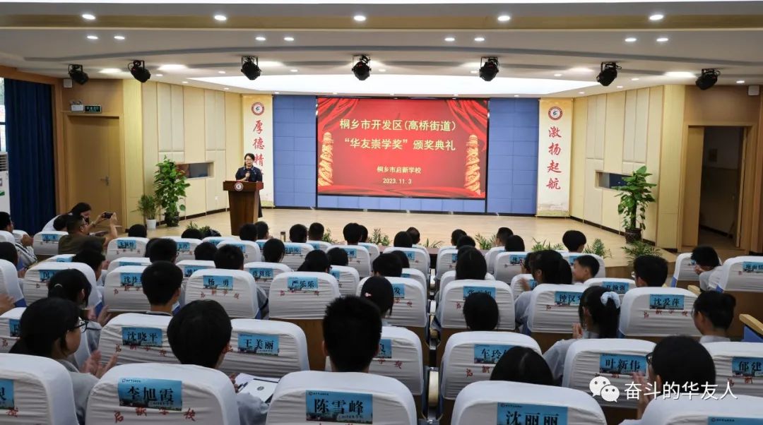 錦繡年華,友你同行;崇智尚德,學(xué)而致遠(yuǎn)。近日,2023年桐鄉(xiāng)經(jīng)濟(jì)開發(fā)區(qū)(高橋街道)“華友崇學(xué)獎(jiǎng)”頒獎(jiǎng)典禮在啟新學(xué)校報(bào)告廳舉行。