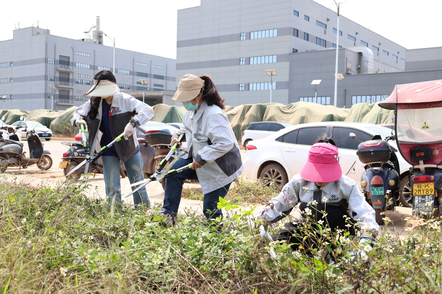 活動(dòng)當(dāng)天,陽(yáng)光明媚,廣西基地全體黨員及各部門(mén)參加人員匯聚在廠區(qū)內(nèi),分為三個(gè)小組5大區(qū)域開(kāi)展清潔、清理與消殺工作。