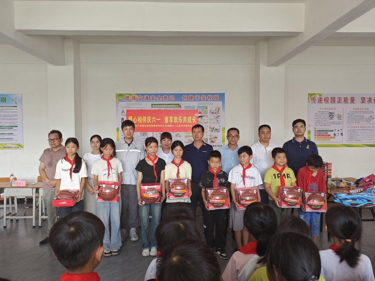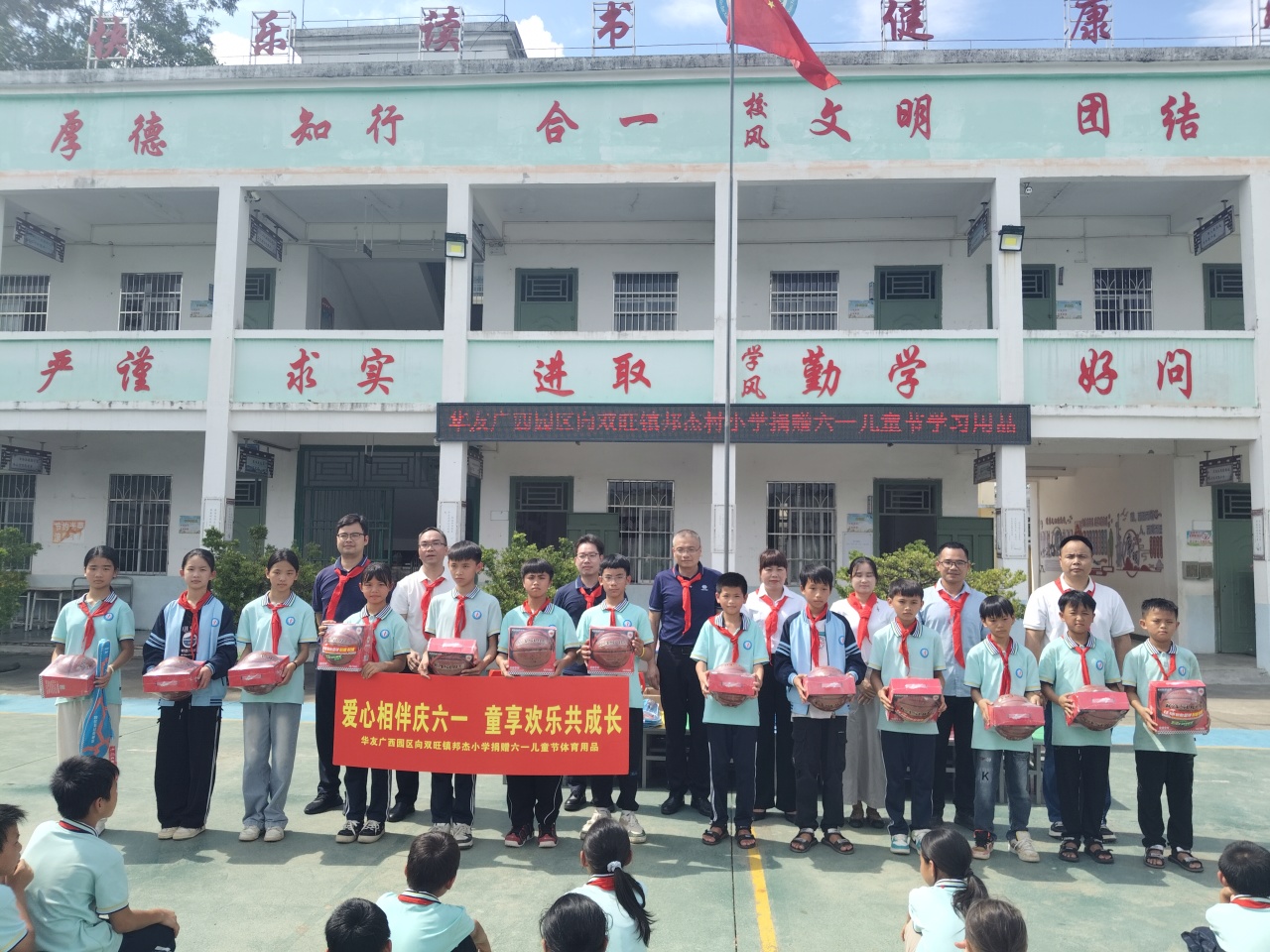 為深入踐行華友“不管在哪里投資,都要為當(dāng)?shù)厣鐣鲐暙I”的投資理念,持續(xù)助力鄉(xiāng)村教育發(fā)展,5月28日,在“六一”兒童節(jié)來臨之際,華友廣西區(qū)域管理中心及華友廣西園區(qū)各產(chǎn)業(yè)集團主要領(lǐng)導(dǎo)分別率隊,再次走進松旺鎮(zhèn)潭蓮村、雙旺鎮(zhèn)白平村、邦杰村、曾村及雙旺鎮(zhèn)中心小學(xué)等5所村級小學(xué)開展“愛心相伴慶六一 童享歡樂共成長”主題愛心捐贈活動,為3700余名學(xué)生送去籃球、羽毛球、跳繩等體育用品。這是華友廣西園區(qū)連續(xù)第三年向周邊鄉(xiāng)鎮(zhèn)學(xué)校進行定向公益支持,用實際行動傳遞qm球盟會·(中國)球盟會溫暖。
