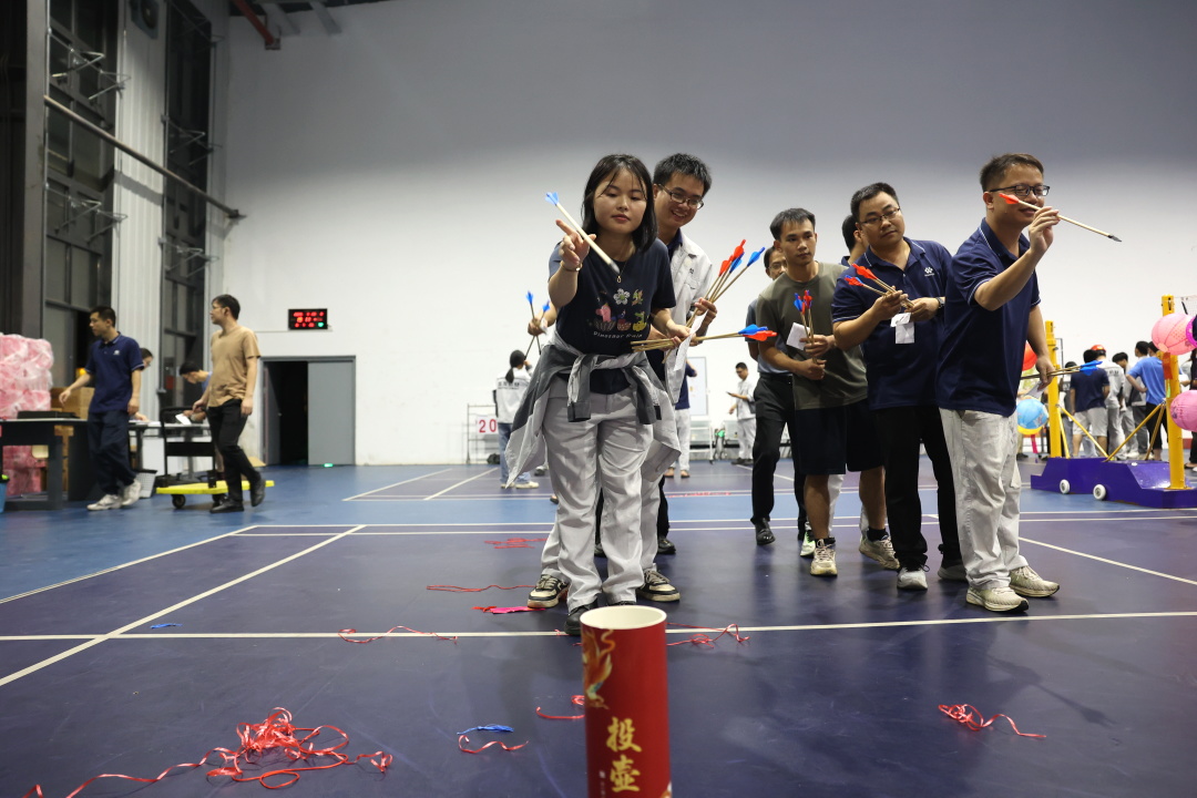 活動(dòng)現(xiàn)場(chǎng),員工們手持游戲卡,穿梭于各個(gè)項(xiàng)目之間,或凝神思考,或精準(zhǔn)投擲,或活力碰撞,加油聲、喝彩聲、歡笑聲匯成一片,將現(xiàn)場(chǎng)氣氛不斷推向高潮。