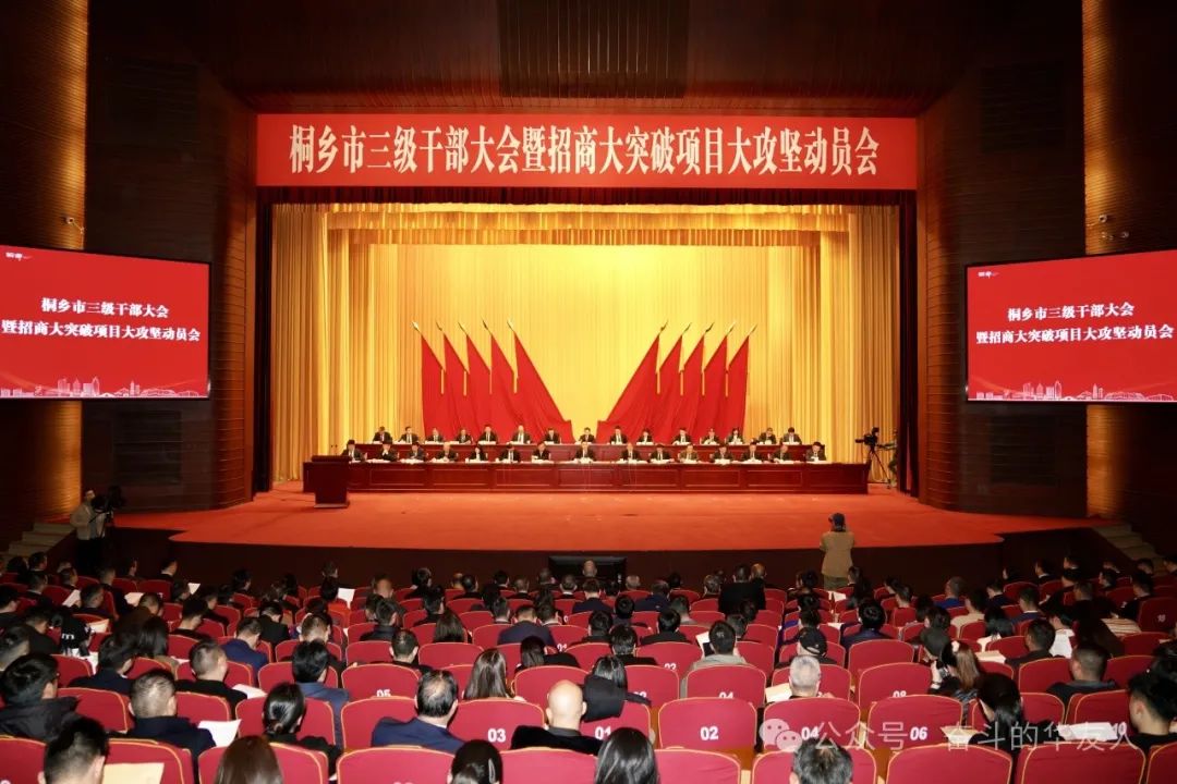 Efforts in the spring's early days are invariably rewarded; diligent endeavor paves the way for new beginnings. On this day (February 17), the City of Tongxiang convened its Tier-Three Cadre Assembly alongside a mobilization conference aimed at achieving significant breakthroughs in investment attraction and project challenges. This assembly served to summarize accomplishments, recognize exemplary individuals, establish benchmarks, invigorate spirits, and galvanize the entire municipality to roll up their sleeves and redouble their efforts. The objective is to regroup and embark anew, earnestly endeavoring to inscribe the Tongxiang narrative within the broader tapestry of Chinese-style modernization, and to expedite the creation of a new Tongxiang characterized by digital civility, shared prosperity, and splendor. The assembly was graced by the presence of Yu Huiyou, Secretary of the Communist Party committee of Tongxiang City, Wang Jian, Deputy Secretary of Communist Party Committee of Tongxiang City and Mayor, alongside the leadership from four distinct echelons. Chen Xuehua, Chairman of the Group, attended the meeting and was accorded a seat on the dais.