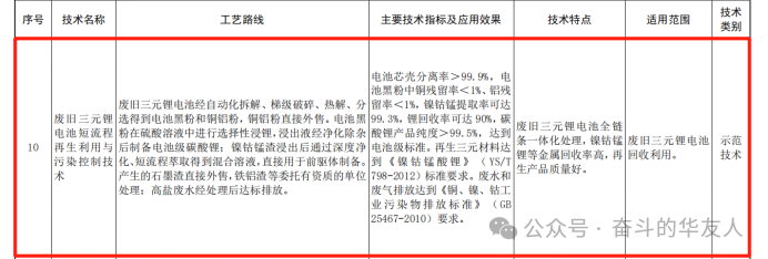The Short Process for Recycling and Pollution Control of Waste Ternary Lithium Batteries Successfully selected for the 2023 National Catalogue of Advanced Pollution Control Technologies (for Solid Waste and Soil Pollution Control).