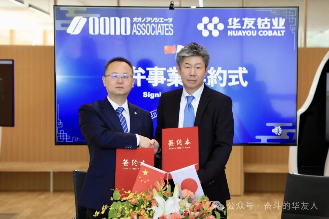 On 14th May, Zhejiang Huayou Recycling Technology Co., Ltd (hereinafter referred to as “Huayou Recycling”) and Japan Ohno Development Co. headquarters in Matsuyama City, Japan (hereinafter referred to as “Ono Development”). The signing ceremony was attended by Yamashita, President of Ono Development, Zhang Binghai, Vice President of Huayou Cobalt, and Bao Wei, General Manager of Huayou Recycling.