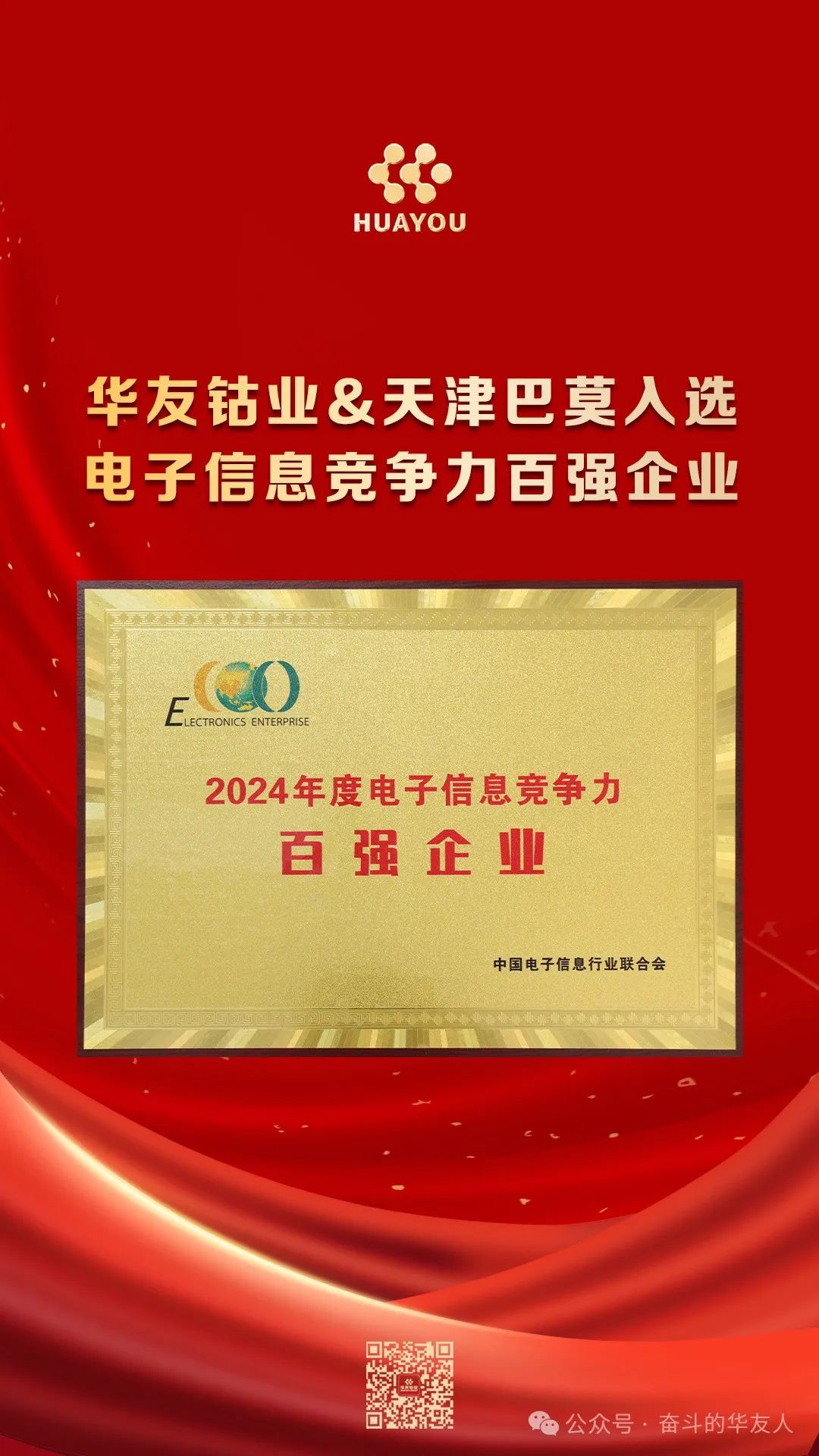 Huayou and Tianjin B&M have both been selected as one of the "Top 100 Enterprises in Electronic Information Competitiveness"!