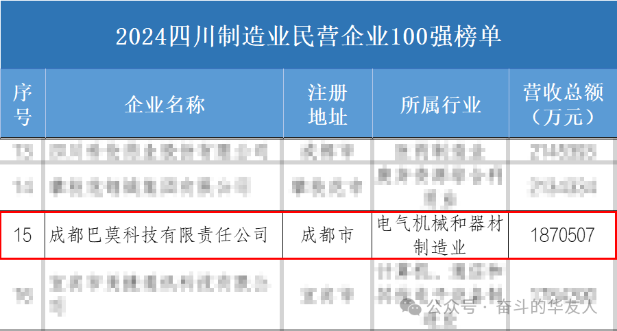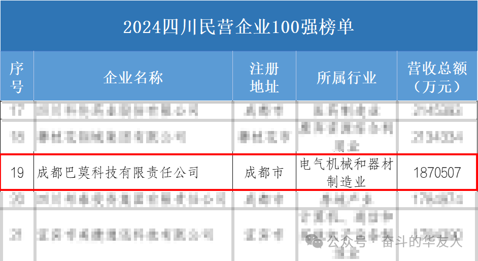 For three consecutive years, the company has been listed! On October 29, 2024, the release conference for the "Top 100 Sichuan Private Enterprises 2024" was held in Zigong. During the conference, the Sichuan Federation of Industry and Commerce (SFIC) announced the "Top 100 Sichuan Private Enterprises 2024" list. Additionally, it was the first time that the SFIC released the "Top 100 Sichuan Manufacturing Private Enterprises 2024" and the "Top 50 Sichuan Service Industry Private Enterprises 2024." Huayou Chengdu B&M Company ranked 19th on the "Top 100 Sichuan Private Enterprises 2024" list and 17th on the "Top 100 Sichuan Manufacturing Private Enterprises 2024" list, marking its third consecutive year on these lists.