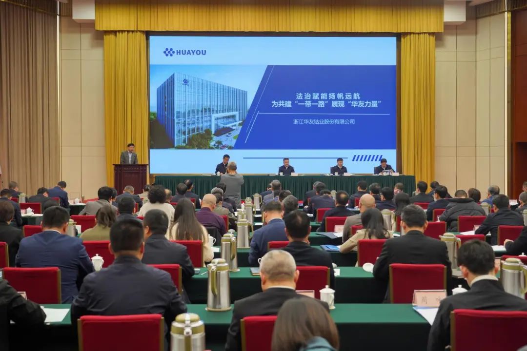會(huì)議旨在總結(jié)交流浙江涉外法治工作,分析當(dāng)前形勢(shì),部署下階段重點(diǎn)任務(wù)。方啟學(xué)在會(huì)上發(fā)表了題為《法治賦能揚(yáng)帆遠(yuǎn)航 為共建“一帶一路” 展現(xiàn) “華友力量”》的演講,展現(xiàn)了華友在涉外法治領(lǐng)域的積極探索與實(shí)踐。