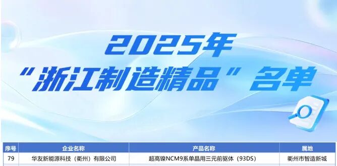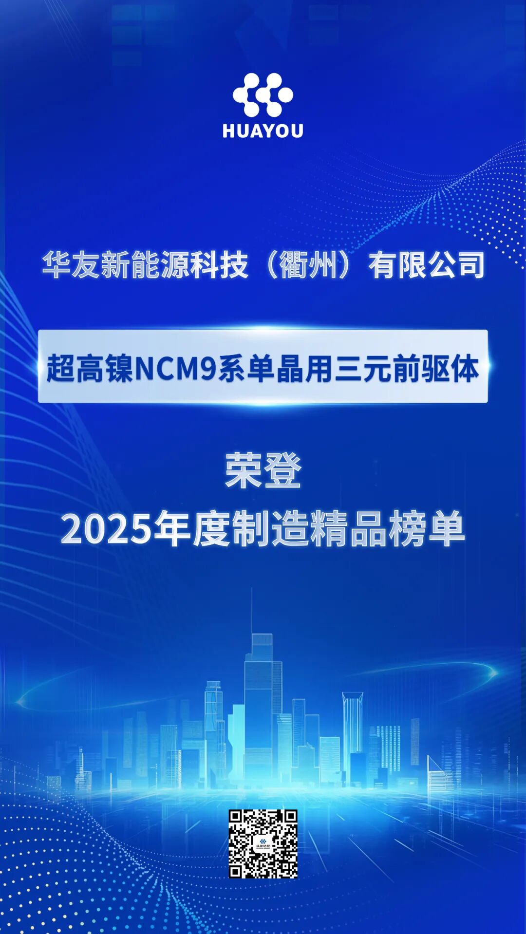 奮戰(zhàn)100天系列之技術(shù)創(chuàng)新 | 華友超高鎳NCM9系單晶用三元前驅(qū)體榮登2025年度"浙江制造精品"榜單