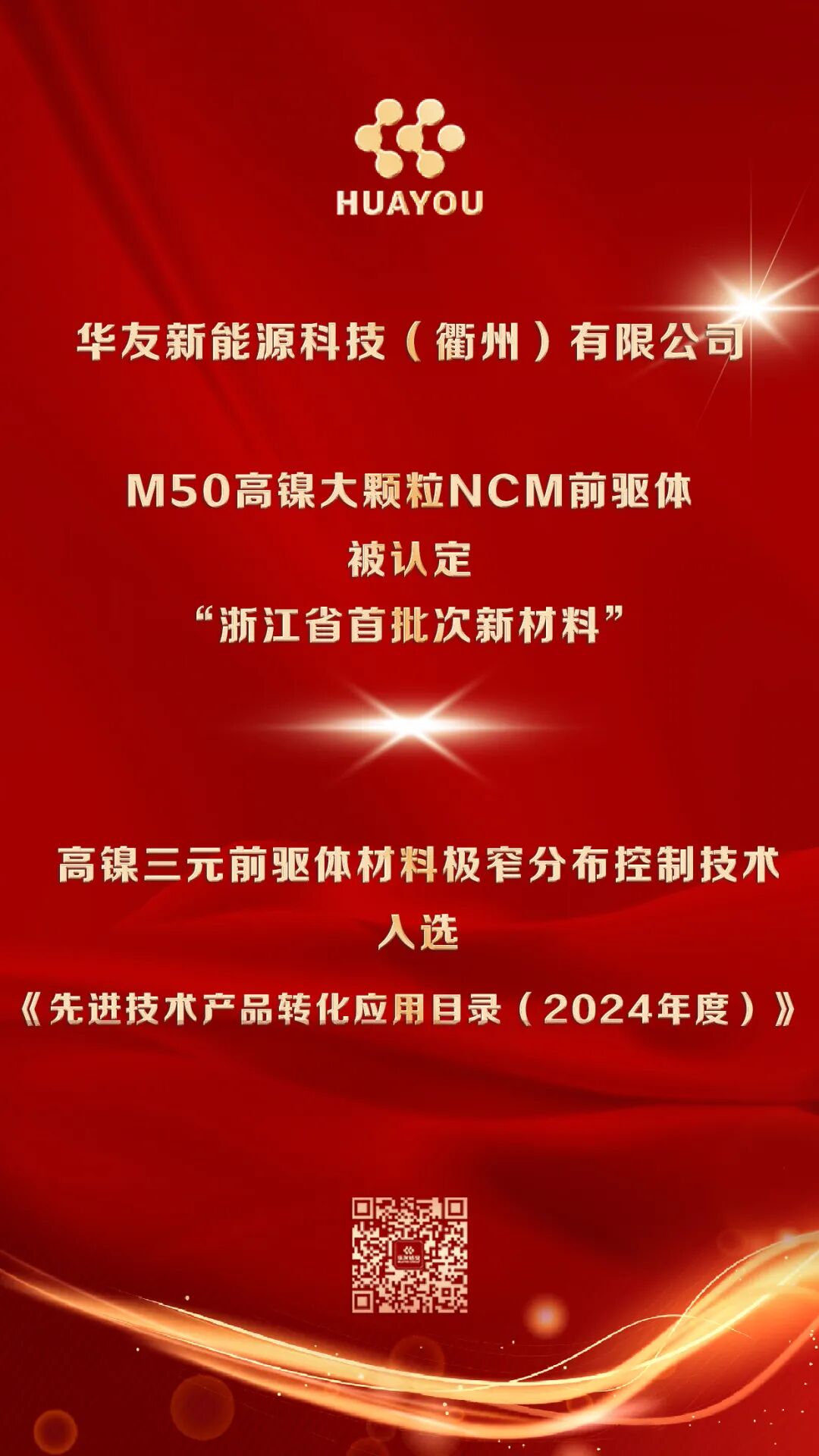 近日,浙江省經(jīng)濟和信息化廳發(fā)布《2025年度浙江省首批次新材料認定名單》,華友新能源科技(衢州)有限公司自主研發(fā)的“M50高鎳大顆粒NCM前驅(qū)體”成功入選,被認定為“浙江省首批次新材料”,標(biāo)志著公司在高鎳材料領(lǐng)域的創(chuàng)新能力獲得省級權(quán)威認可。