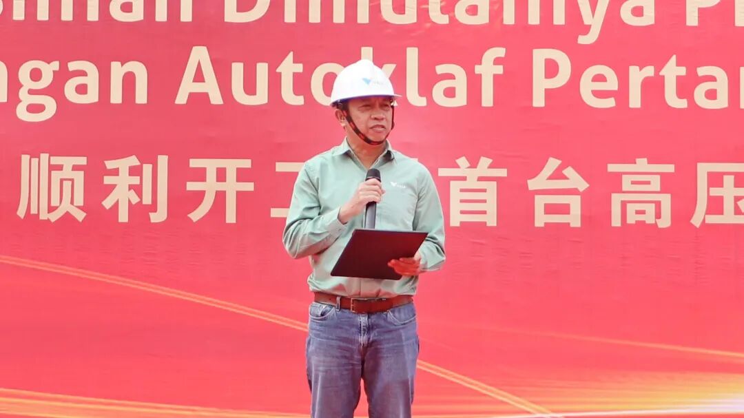 當地時間12月13日上午8時28分,華友印尼波馬拉園區(qū)(簡稱IPIP)內,由華友、淡水河谷、福特汽車三方投資的KNI高壓酸浸濕法冶煉項目建設地,人頭攢動、彩旗飄飄——首臺高壓釜成功安裝儀式正在舉行。