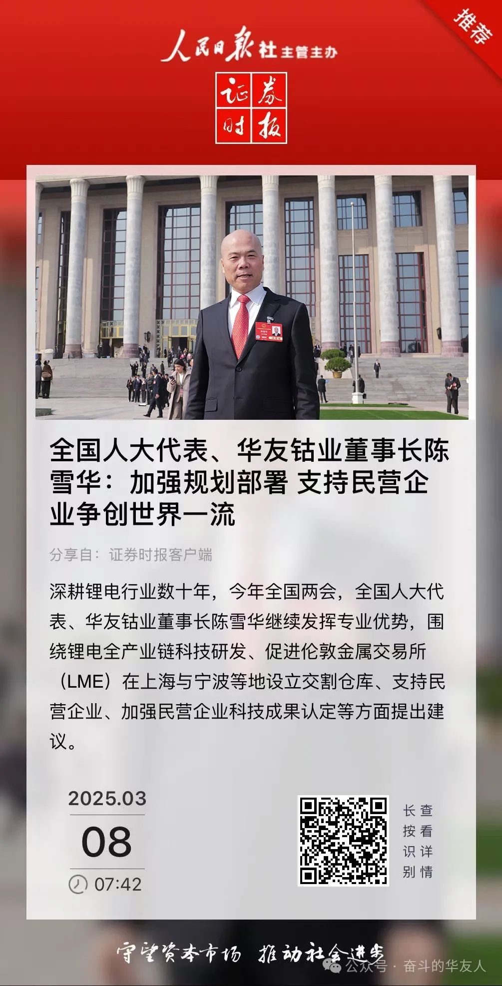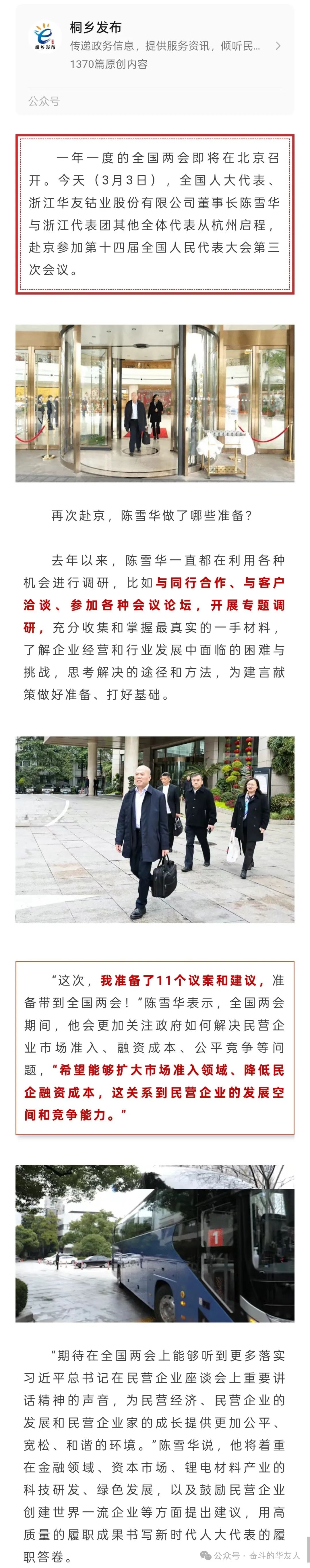 全國(guó)“兩會(huì)”期間,全國(guó)人大代表、華友鈷業(yè)董事長(zhǎng)陳雪華聚焦民營(yíng)qm球盟會(huì)·(中國(guó))球盟會(huì)、新能源鋰電產(chǎn)業(yè)積極建言獻(xiàn)策,他的建議受到《浙江衛(wèi)視qm球盟會(huì)·(中國(guó))球盟會(huì)聯(lián)播》、《上海證券報(bào)》、《證券時(shí)報(bào)網(wǎng)》、《財(cái)聯(lián)社》、《桐鄉(xiāng)發(fā)布》等主流媒體廣泛關(guān)注。